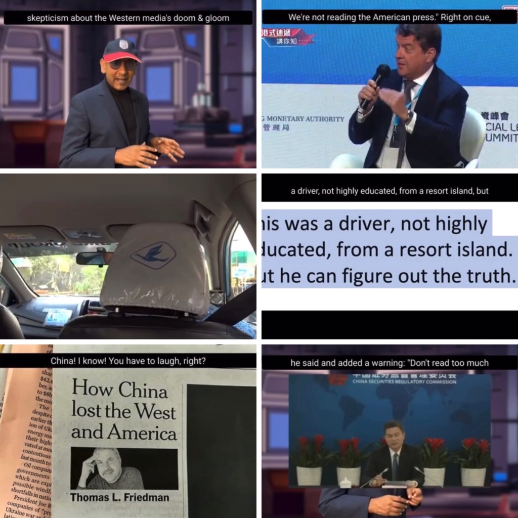 Video: Two bankers and a taxi driver share one message, they sees through US fake news propaganda except in US 90% are brainwashed by US Gov’t mouthpiece fake news medias 兩名銀行家和一名出租車司機分享一個信息,他們看穿了美國的假新聞宣傳,除了在美國,90% 美國人被美國政府喉舌的假新聞媒體洗腦
