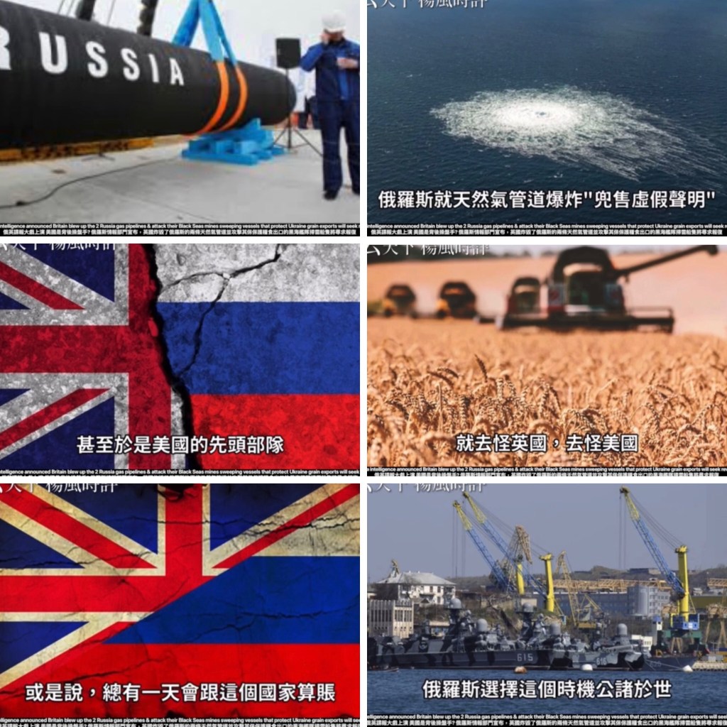 Video: Russia intelligence announced Britain blew up the 2 Russia gas pipelines & attack their Black Seas mines sweeping vessels that protect Ukraine grain exports will seek revenge 俄英諜報大戲上演 美國是背後操盤手? 俄羅斯情報部門宣布,英國炸毀了俄羅斯的兩條天然氣管道並攻擊其保保護糧食出口的黑海艦隊掃雷船隻將尋求報復 According to George Galloway, former British MP, PM Least Trust used her personal cellphone to text and chat all the top military secrets. She texted Blinking “It’s done.” Within 2 minutes after NS pipeline bombing. Before anyone see the leaking bubbling gas. Apparently, US State Department has colluded with UK to destroy Russian and German (a NATO member) infrastructure. https://rumble.com/v1qpn3y-russia-intelligence-announced-britain-blew-up-the-2-russia-gas-pipelines.html https://m.facebook.com/story.php?story_fbid=823219642234696&id=100036400039778