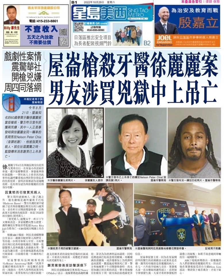 Your girlfriends or male friends could be hazardous to your health and worst costing your life. The Chinese dentist got shot dead in Oakland California sat inside the car next to her boyfriend who ordered the killing 要帶眼識人