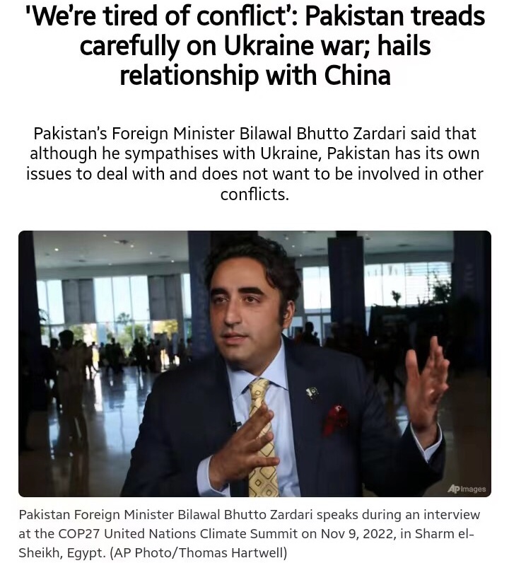 Pakistan’s Foreign Minister Bilawal Bhutto Zardari said that although he sympathises with Ukraine, Pakistan has its own issues to deal with and does not want to be involved in other conflicts.