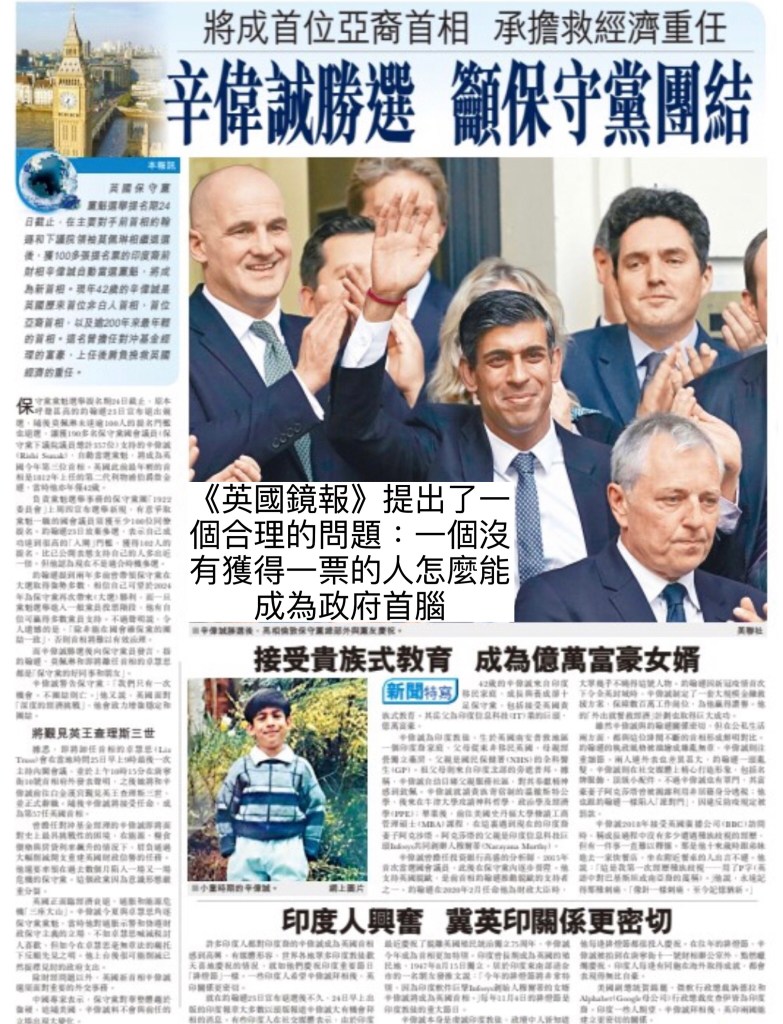 “Our new (unelected) PM. Who voted for you?” The Daily Mirror asks a reasonable question: how can a person who has not received a single vote be the head of government and this is British (fake) democracy? “我們的新(非當選)首相, 誰投票給了你?”《英國鏡報》提出了一個合理的問題:一個沒有獲得一票的人怎麼能成為政府首腦,這就是英國(假)民主?