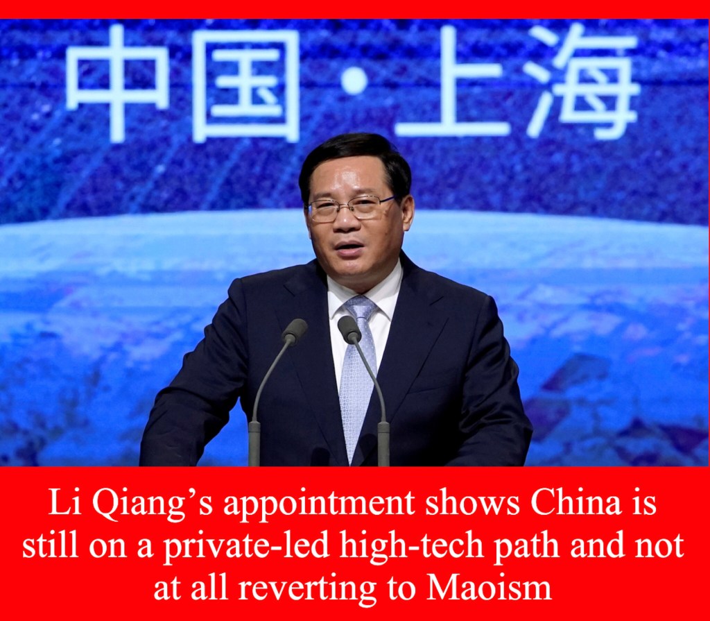 Among other things, Li was one of Jack Ma’s most visible supporters in the China Communist Party leadership. He brought Elon Musk’s Tesla to Shanghai. His appointment affirms the leadership’s support for private-led high-tech industry.