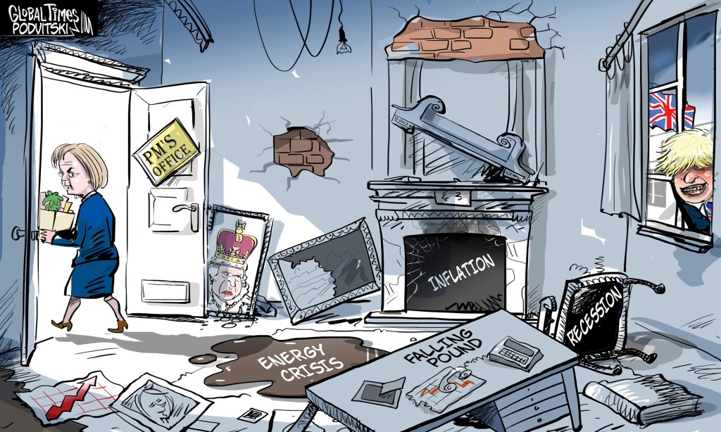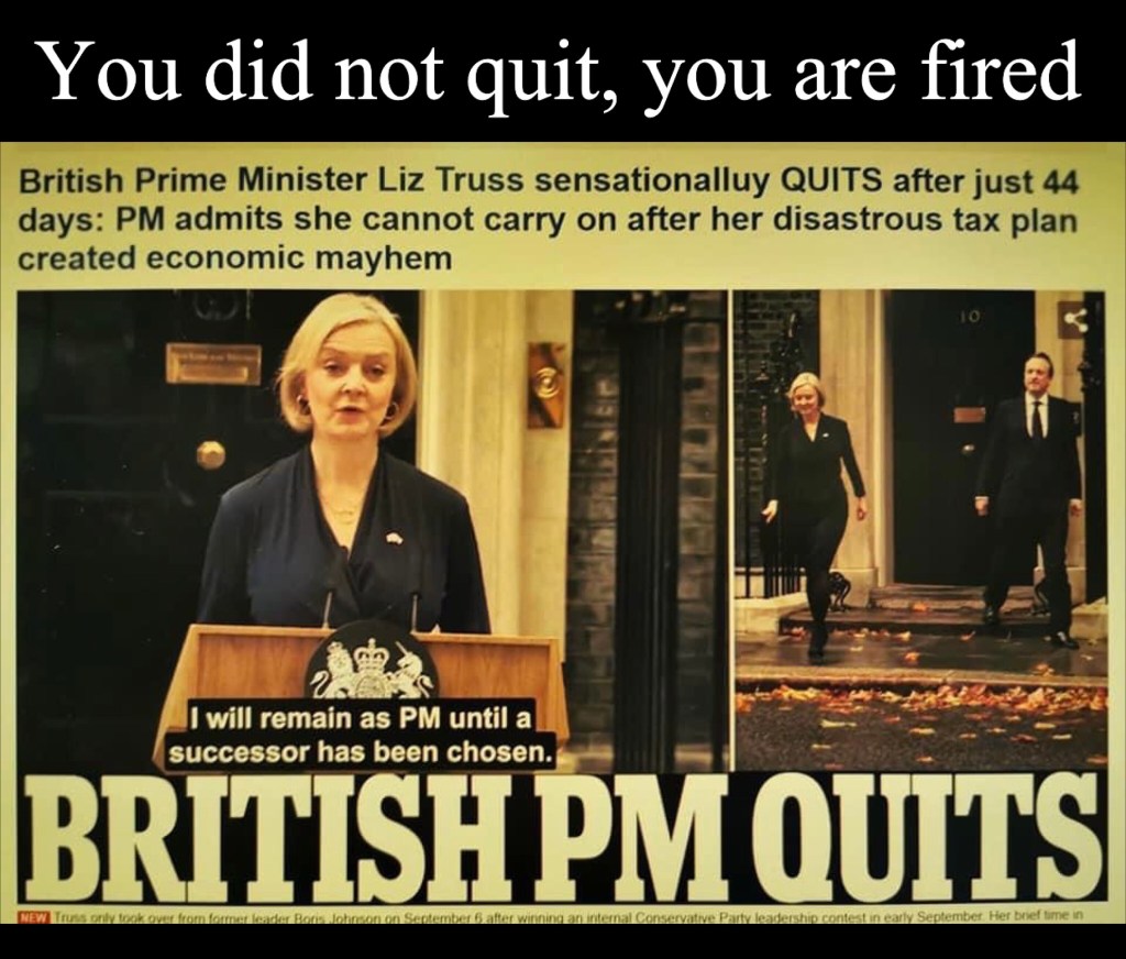 Shortest stay at 10 Downing Street with impressive damage record: Queen Elizabeth dead 48 hours after shaking her hand; damages spread like viruses to British Pounds, Conservative Party and Economy 在唐寧街10號停留時間最短, 損壞記錄令人印象深刻: 伊麗莎白女王在握她的手48 小時後黑死事頭婆, 損失像病毒一樣蔓延到英鎊, 保守黨和經濟.
