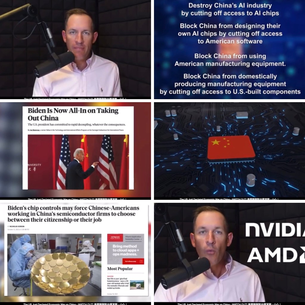 The US just declared war on China! Joe Biden latest sanctions banning China from accessing microchips is going to have a major impact on the world economy. Many view this as an act of economic war and it will lead to a major decline in the microchip industry worldwide. How will China respond? Let’s break it down 美國剛剛對中國宣戰!喬·拜登最近禁止中國獲取微芯片的製裁將對世界經濟產生重大影響。許多人認為這是一場經濟戰爭,將導致全球微芯片行業大幅下滑。中國將如何應對?讓我們分解一下