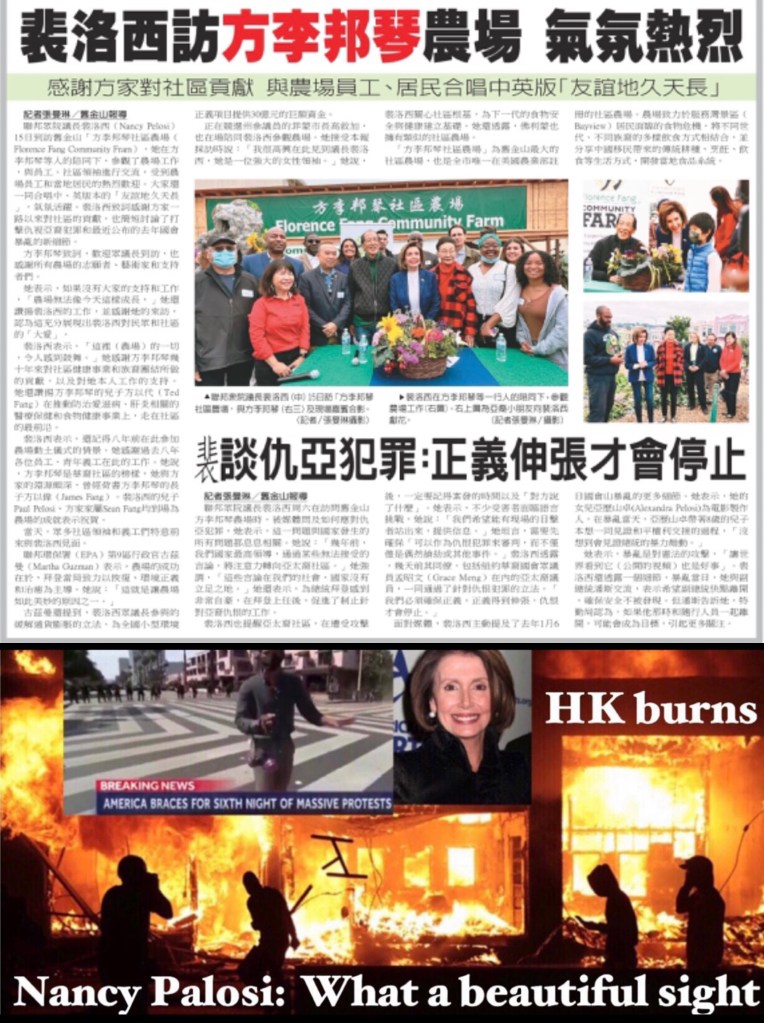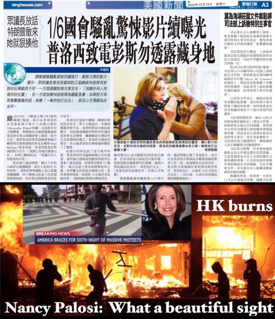 When Trump’s supporters storms Nancy Pelosi office, the cheerful mood when she saw Hong Kong on fire by NED backed terrorists said “what a beautiful sight” turned into “what a horrific sight” and in chicken mold. 當特朗普的支持者衝進佩洛西的辦公室時,還清楚紀得她看到香港被美國民主基金會支持的恐怖分子縱火時的歡快情緒說“多麼美麗的風景線” 變成了“多麼可怕的景象”.
