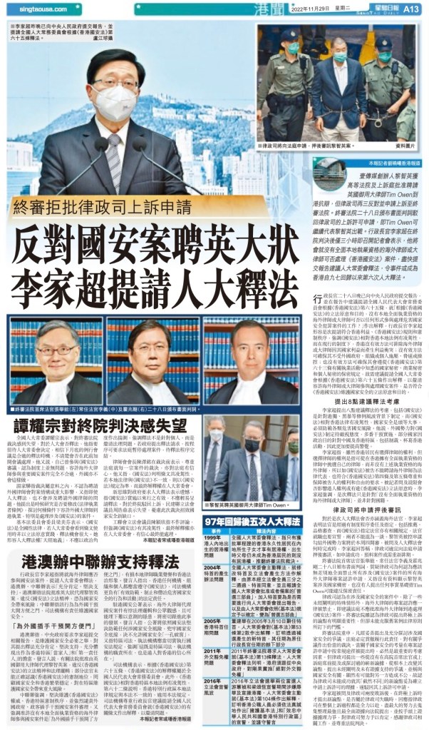 HK Chief Executive request Beijing to amend law banning foreign lawyers to participate in any homeland security cases (US does not permit foreign attorney either just in case US Gov’t mouthpiece medias made a big fuss about it)