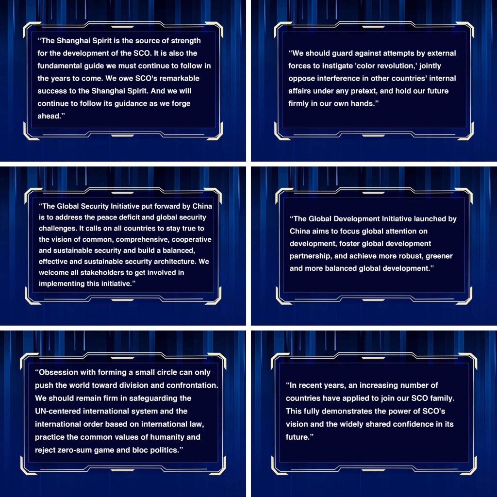 Chinese President Xi Jinping spoke at the 22nd Meeting of the Council of Heads of State of the Shanghai Cooperation Organization (SCO) on Friday in the Uzbek city of Samarkand. Here are some of the key quotes from his speech.