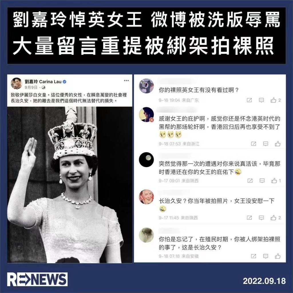 Movie Star Carina Lau mourn the death of Queen Elizabeth invited backlash 電影明星劉嘉玲悼念伊麗莎白女王的逝世,引發強烈反對