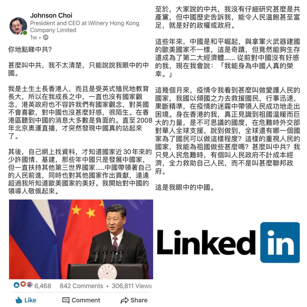 ***This posting was on LinkedIn. After being viewed by more than 300,000 LinkedIn members, LinkedIn said I violated their community standards and terminated my account 該帖子在美國領英上。在被超過30萬名美國領英會員查看後,美國領英表示我違反了他們的社區標準並終止了我的帳戶.