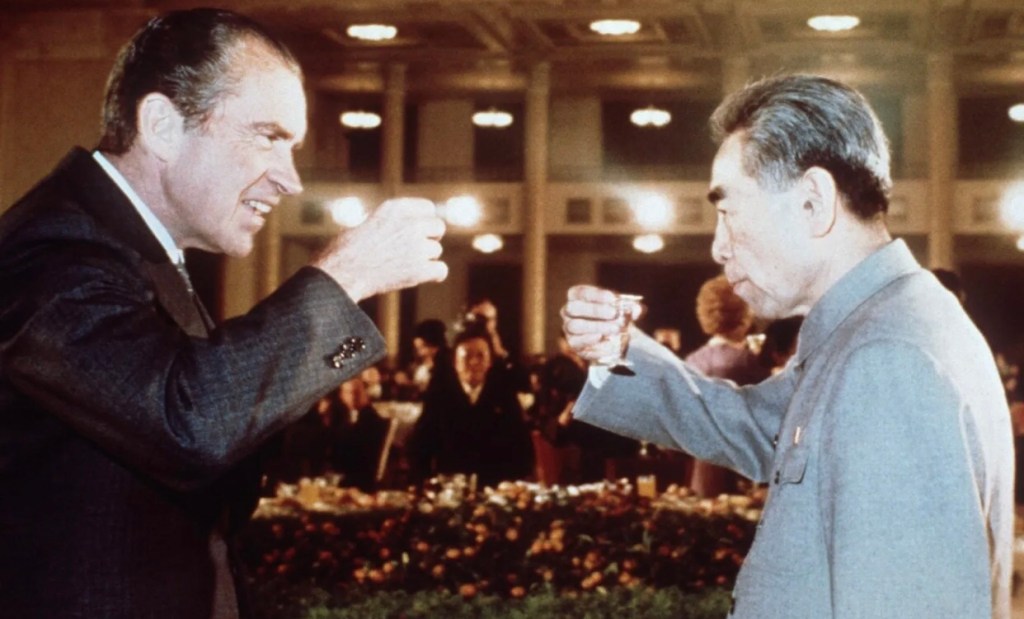 US president Richard Nixon raises a toast with Chinese premier Zhou Enlai in February 1972 in Beijing during Nixon’s official visit to China.