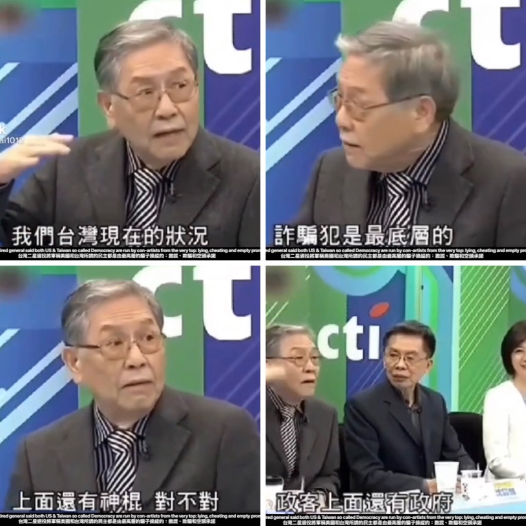 Video: Taiwan 2-stars retired general said both US & Taiwan so called Democracy are run by con-artists from the very top: lying, cheating and empty promises 台灣二星退役將軍稱美國和台灣所謂的民主都是由最高層的騙子操縱的:撒謊、欺騙和空頭承諾