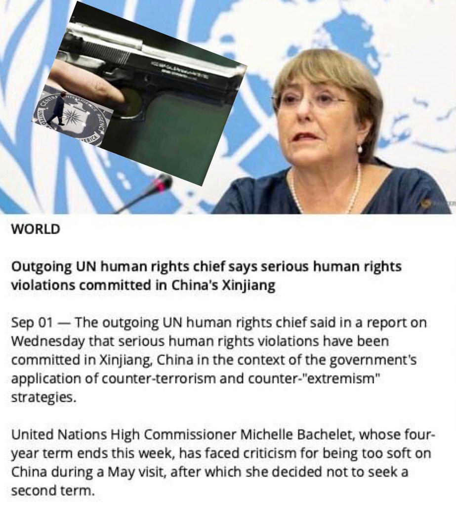 Michelle Bachelet has no choice but to sign off on the UN report that contradicted what she saw in Xinjiang, US refused to let her seek a second term. 米歇爾·巴切萊特別無選擇,只能簽署與她在新疆看到的情況相矛盾的聯合國報告,美國拒絕讓她尋求連任.