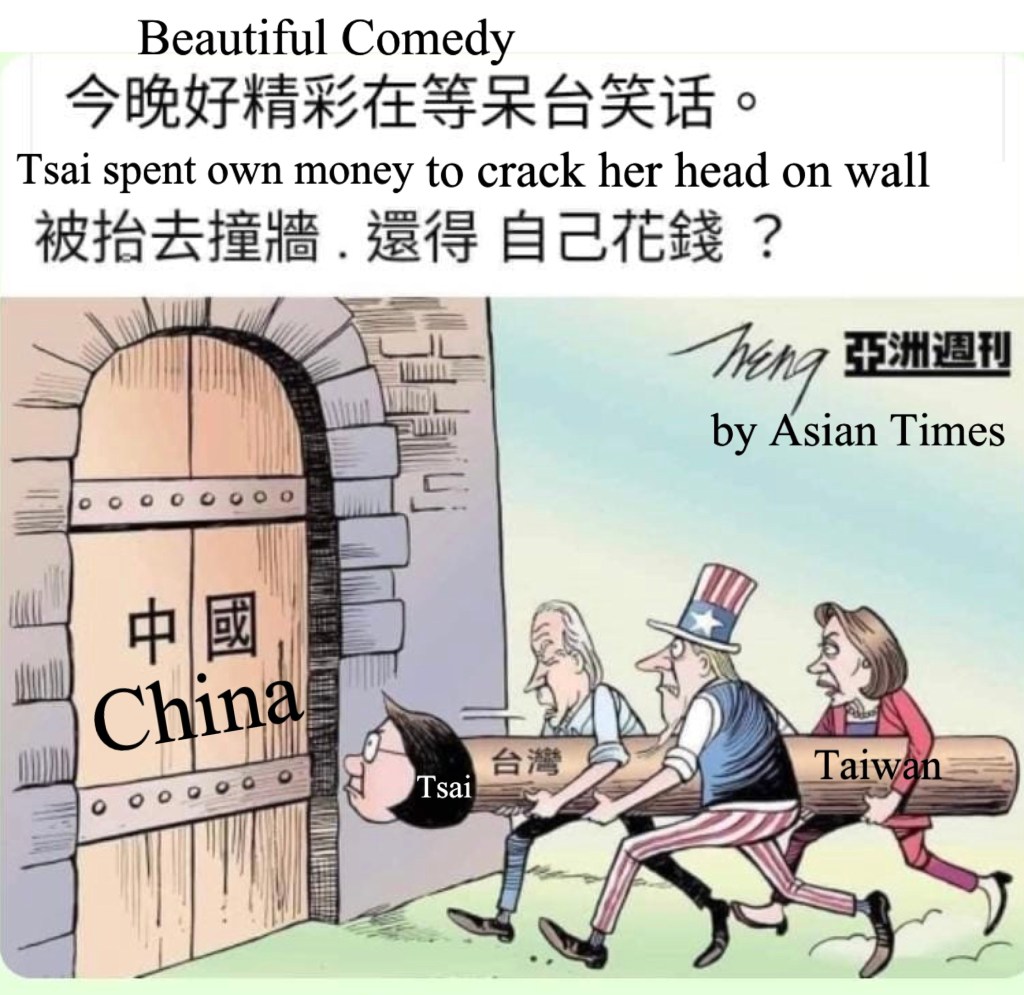 Beautiful comedy by Asian Times: English Tsai spent own money to crack head on China wall 亞洲週刊今晚好精彩在等呆台笑話, 蔡英文被抬去撞牆, 還得自己花錢?