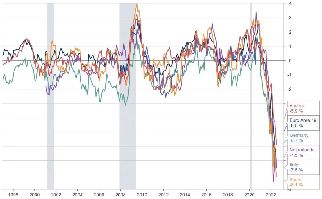 Value of EU wages have been coming off quite hard .. 6mths forward from here, at the nearest .. means less consumer spending, reduced production, higher unemployment .. probably more € printing (again) to bail themselves out .. more debt & even higher inflation under current circumstances ..