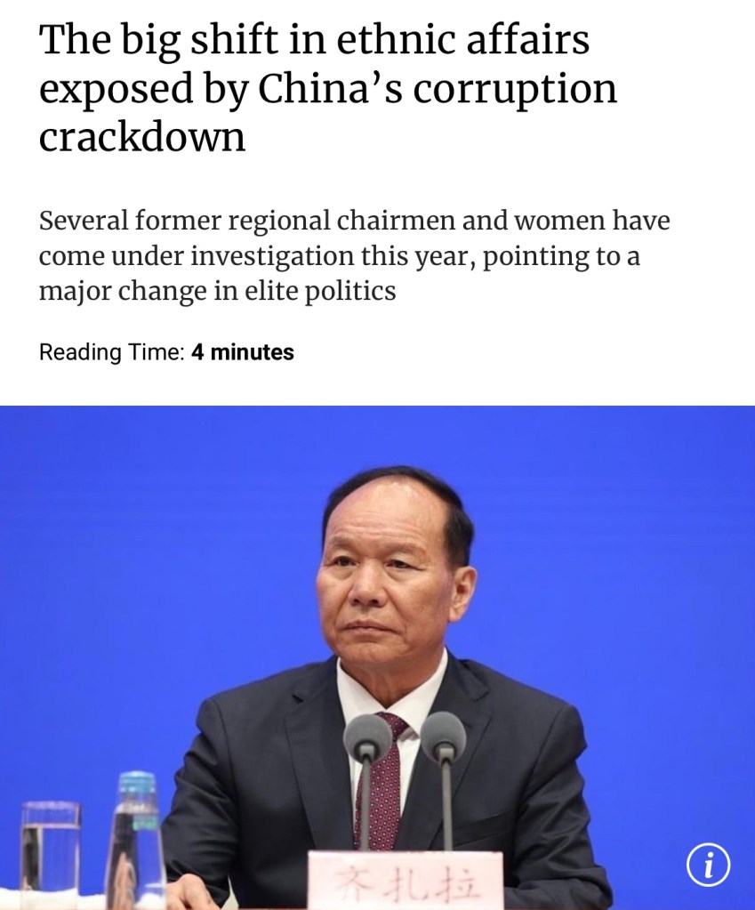 SCMP: Observers say that the downfall of the officials reflects a broader push for political discipline, signalling that ethnicity-based leniency in elite politics no longer applies. No one is above the law! 南華早報:觀察人士稱,這些官員的落馬體現了更廣泛的政治紀律要求,表明精英政治中基於種族的寬大處理已不再適用, 無人能凌駕於法律之上!